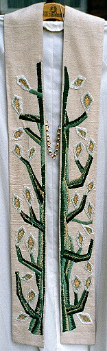 Gestaltung der weißen Stola Pate stand, die der Pastor bei der Taufe trägt.